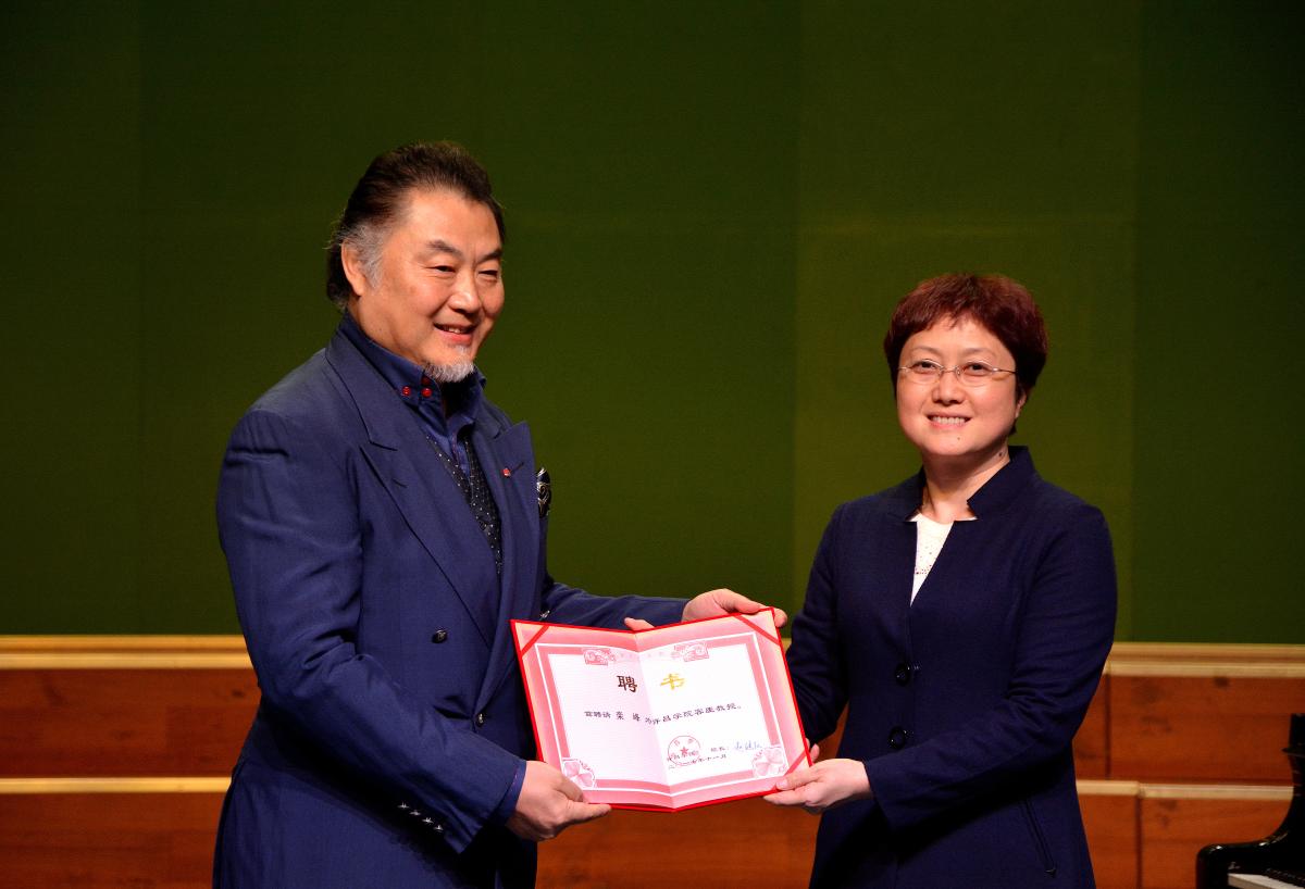 聘任仪式上,赵继红院长亲自为栾峰先生颁发我校客座教授聘书。副院长黄怡俐代表学校致辞,她对栾峰教授对我校声乐教学的关注以及8天大师班的成功举办表示诚挚的感谢和祝贺,又对音乐舞蹈学院近年来专业教学改革和教师继续培训方面给予充分的肯定。