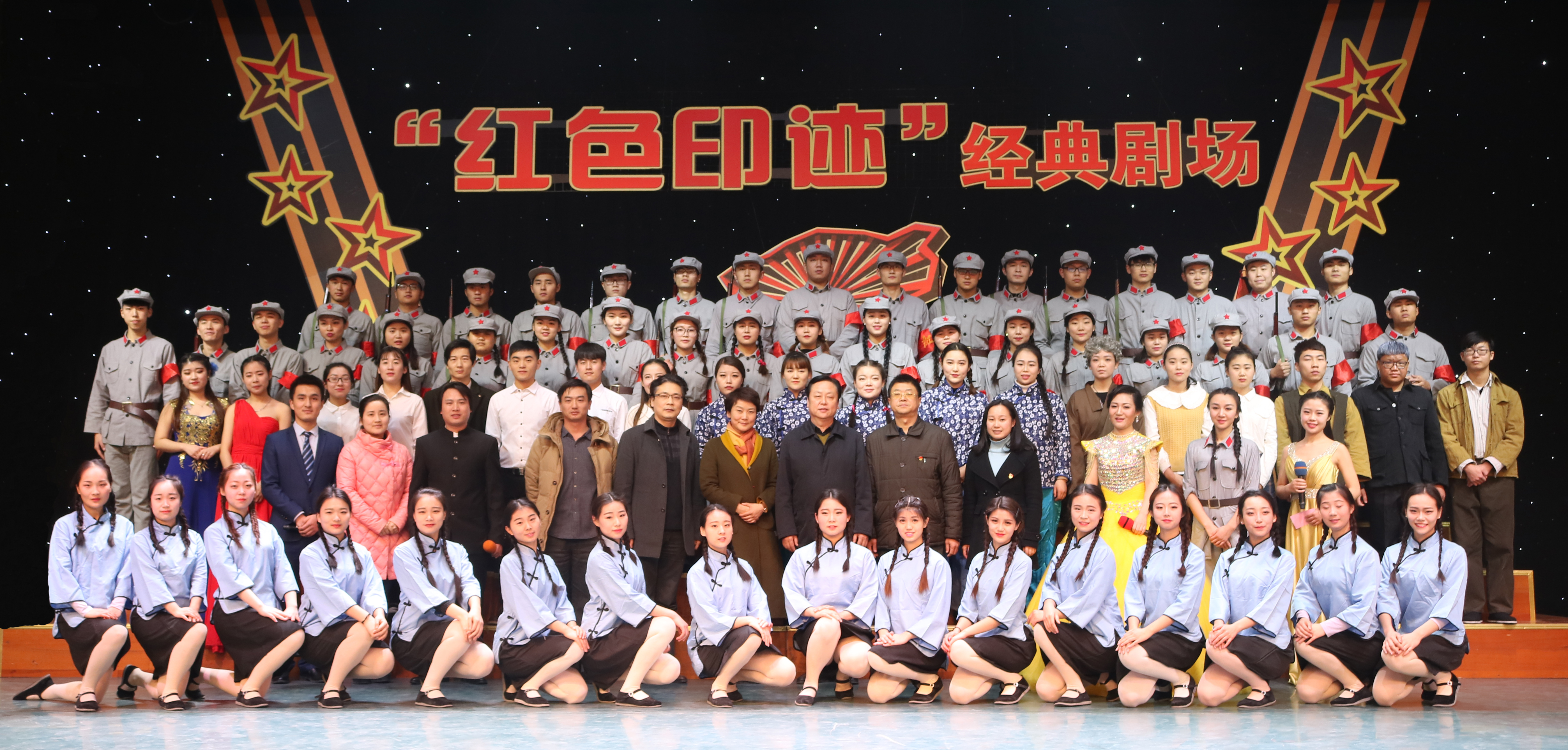 本次活动由校党委组织部主办,音乐舞蹈学院党总支承办。红色经典剧场以“重温革命历史、弘扬时代精神”为宗旨,以踏寻“红色印迹”为主线,旨在继承和弘扬老一辈共产党员的革命意志和不屈精神,进一步增强党员党性修养。活动在舞台情景剧《红色印记》中拉开了序幕。它以长征历史为主线,将《十送红军》、《过雪山草地》等耳熟能详的经典唱段以情景剧的形式将革命历史生动地展现出来。群舞《竹蜻蜓》、独舞《希望》等作品均是结合党员师生平日的政治学习有感而改编创作的舞蹈作品,她们深刻地反映了战争给人性带来的摧残,只有共产党才能救中国,才能让人民过上和平、安定、幸福的生活。由我院学生编排的校园舞台剧《面朝大海、春暖花开》讲述了当代大学生西部支教的感人故事,启示青年学生要心存志远,不断提升自己的社会责任感和社会公益心。二胡重奏《战马奔腾》、二重唱《共筑中国梦》则以鲜明的节奏、激昂的旋律唱响时代正声。生动的演绎催人泪下,精彩的表演博得阵阵掌声。