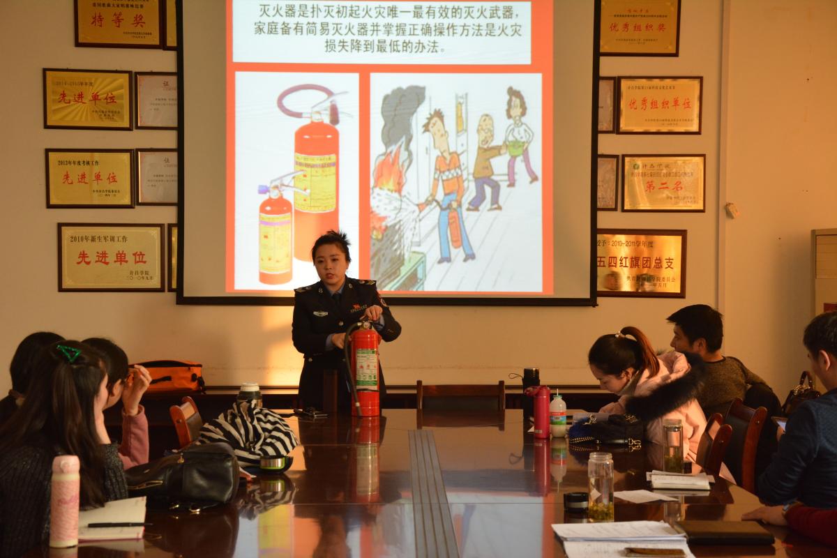 为进一步增强师生消防安全意识,提高预防火灾事故和火灾自救能力,12月22日下午,我院在艺术楼211、328分别举行师生的消防安全知识讲座。讲座由党总支副书记申璐莹主持,河南省消防协会宣教处刘雅楠教员主讲。